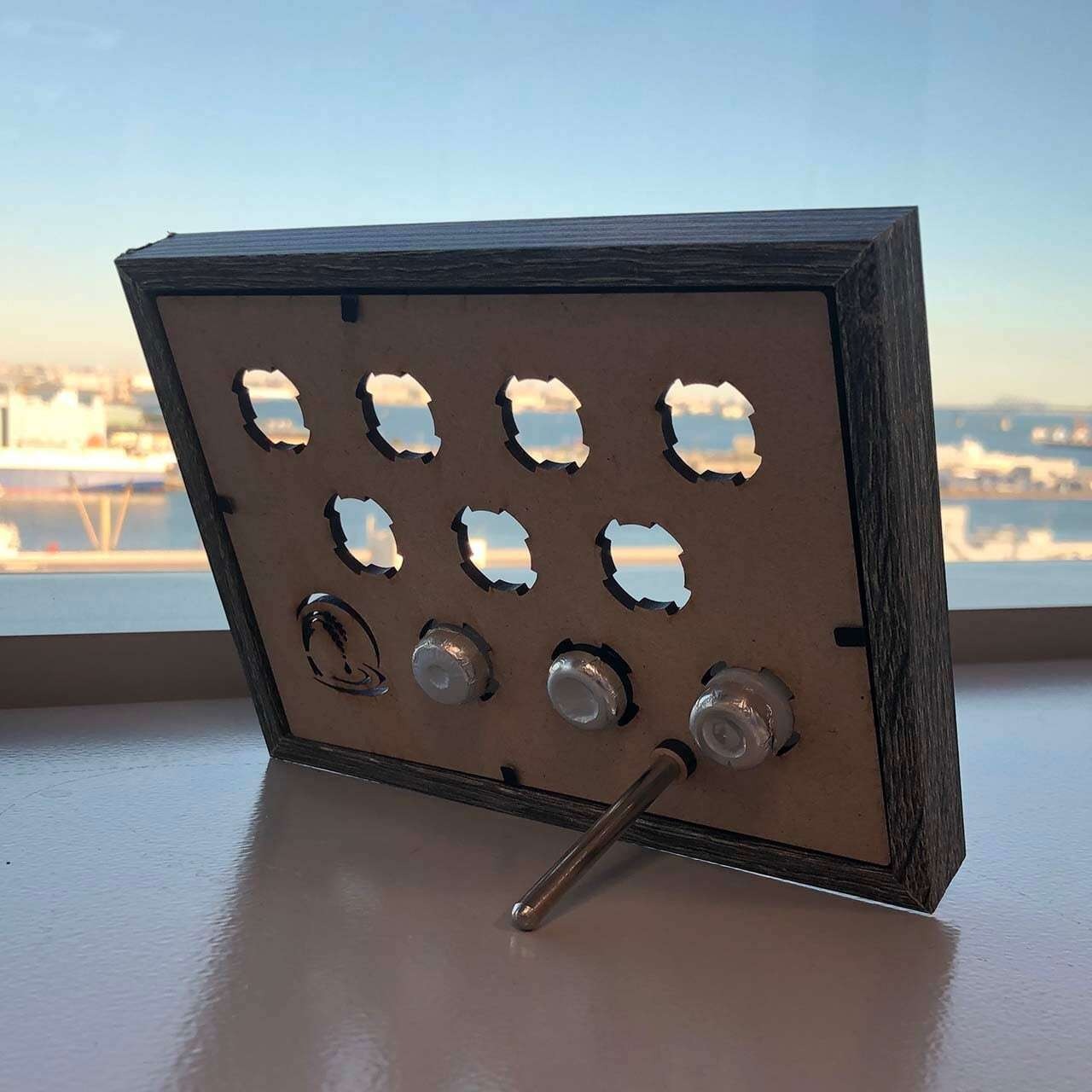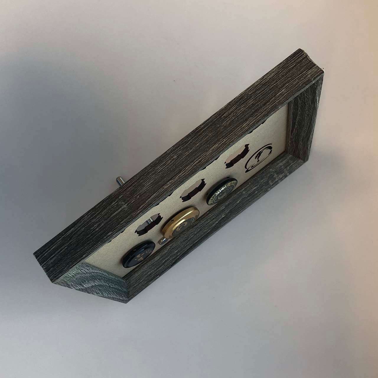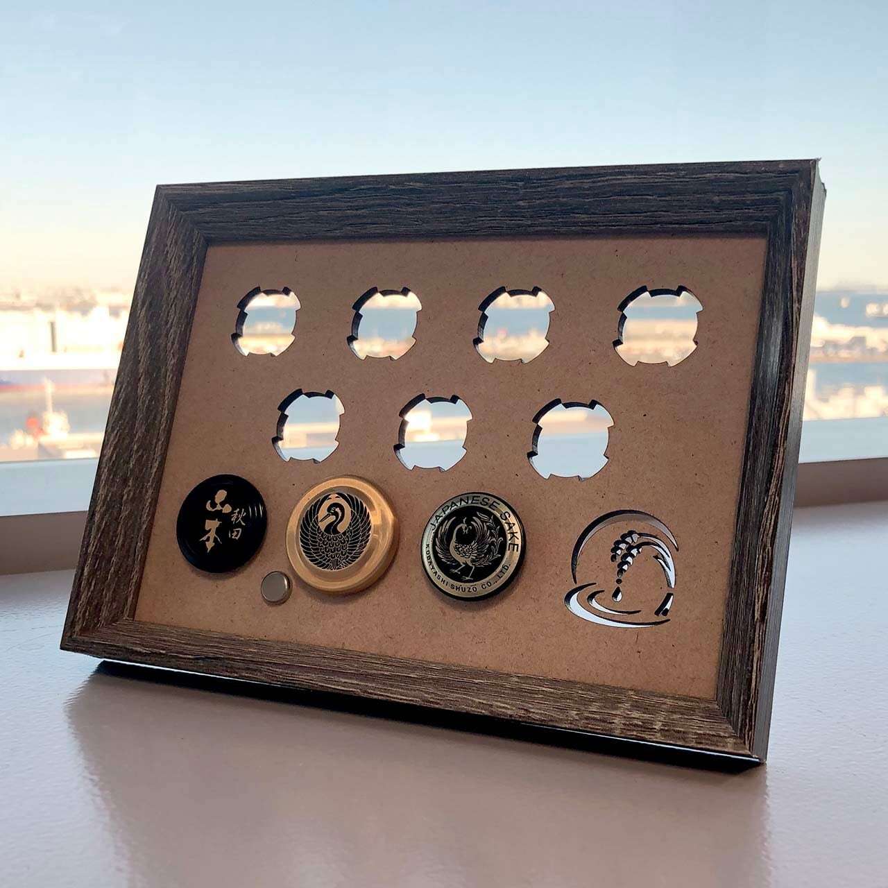 額縁にさけぶた10個を取り付けられる「さけぶたフレーム」です。